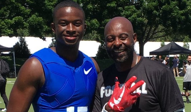 (PSU WR commit Justin Shorter with Jerry Rice above)